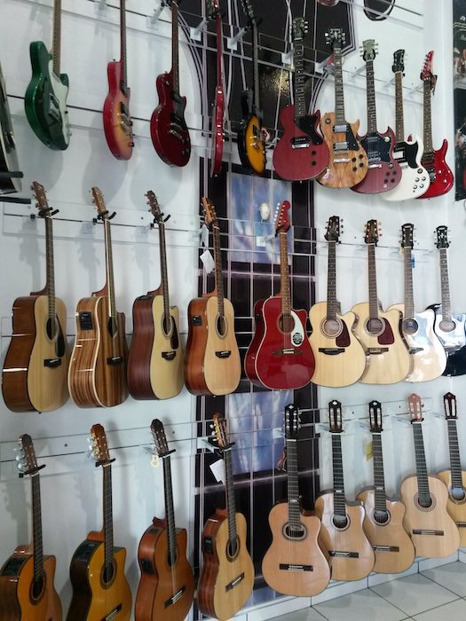 Mas a loja também realiza outras atividades presenciais, como consertos e regulagens de instrumentos de corda e percussão.