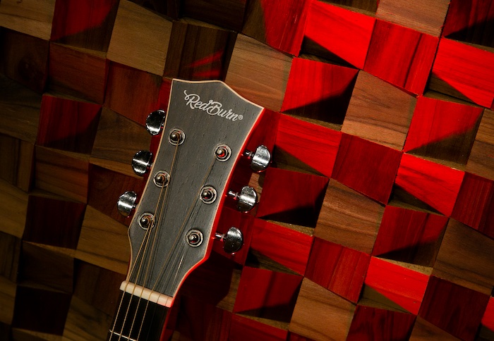 Os violões disponíveis na sua linha de produtos são feitos na Ásia, mas seguem rigorosos padrões e testes, com componentes e detalhes pensados exclusivamente pela RedBurn. “Nossos violões contam com a captação da Fishman, cordas D’Addario e outros detalhes que se juntam para formar um design destacado. Para se ter uma idea, dentro da boca no interior do violão, não colocamos a marca gravada em papel, nessa etiqueta utilizamos uma madeira gravada”, comenta Leandro.