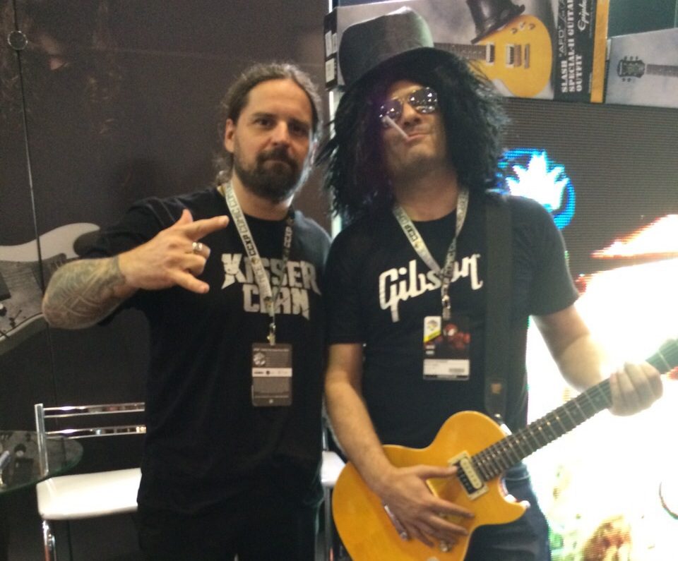 - Andreas Kisse e Slash Cover capitaneados pela Royal Music; detalhe para a guitarra Epiphone Les Paul Slash AFD, lançada no evento