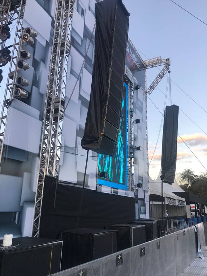 A empresa de locação Lade Palco Som Luz aproveitou a oportunidade para usar o sistema Slinpec 214Y pela primeira vez, junto com amplificadores Powersoft K20 e X4.