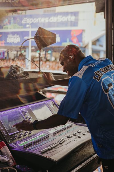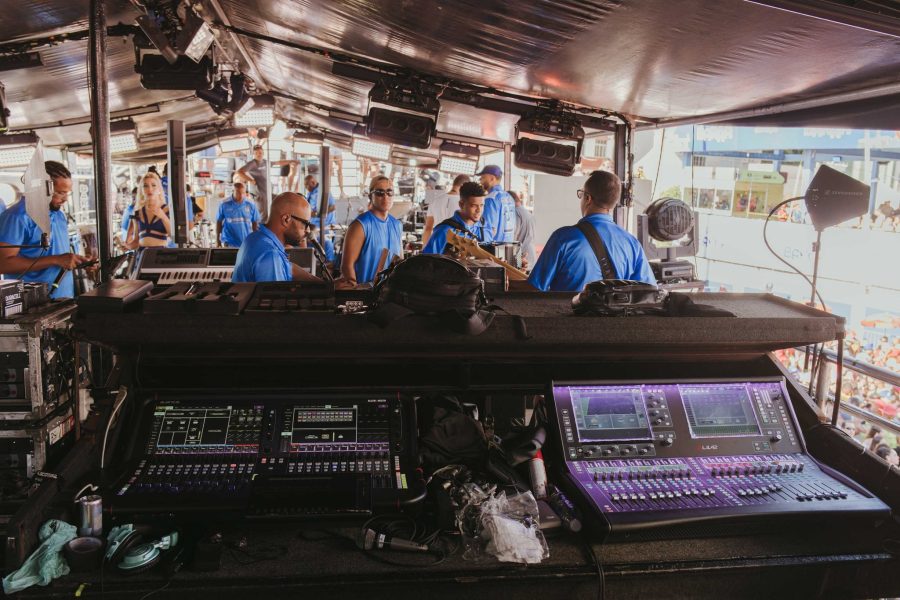 As condições do carnaval —com palcos móveis e jornadas prolongadas— exigem consoles com flexibilidade, estabilidade e rapidez de operação.