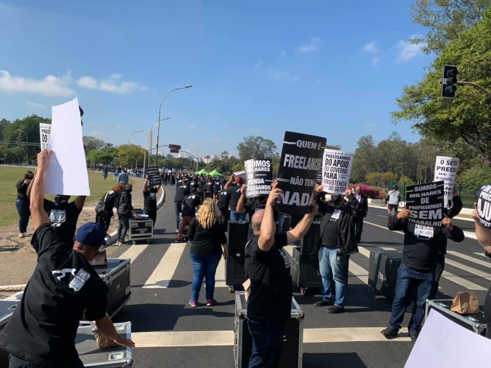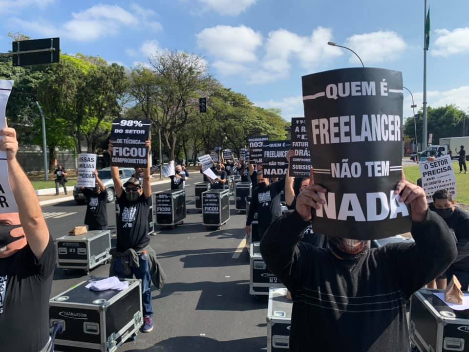Técnicos da indústria do entretenimento realizaram protesto em São Paulo