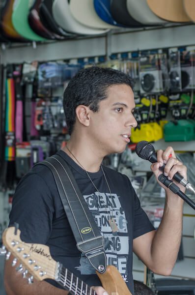 Glebson Henrique, músico profissional e professor de guitarra há cinco anos em Pernambuco – na BSB Musical no Recife – e também em Palmares, cidade do interior do estado onde reside, abraçou a causa do Dia Nacional do Ensino da Música e, em parceria com o principal lojista de instrumentos musicais da cidade, a Eletro Sat, realizaram um workshop gratuito na loja.