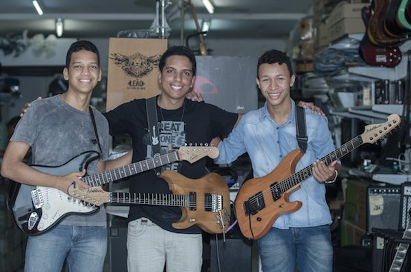 Glebson Henrique (centro) com seus alunos de guitarra Gabriel (esquerda) e Marcelo (direita) que participaram do workshop